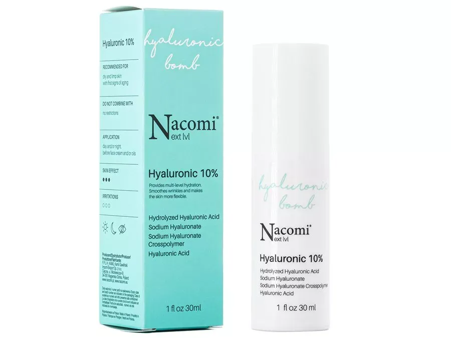 Oprócz skóry suchej, Nacomi kwas hialuronowy jest również polecany dla osób z skórą tłustą i mieszaną. Choć może się wydawać, że nawilżanie skóry o zwiększonej produkcji sebum jest zbędne, kwas hialuronowy pomaga w utrzymaniu odpowiedniego poziomu nawilżenia bez obciążania cery. Dzięki temu, można zredukować występowanie niedoskonałości i zminimalizować widoczność porów, co jest szczególnie korzystne dla osób z tendencją do trądziku.Czytaj więcej: Jak przyspieszyć wchłanianie kwasu hialuronowego - skuteczne metody